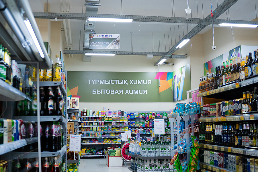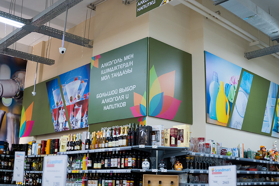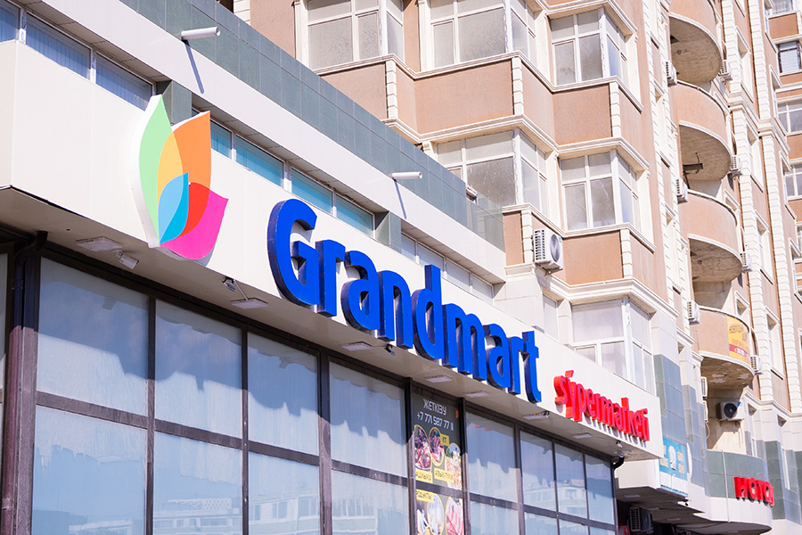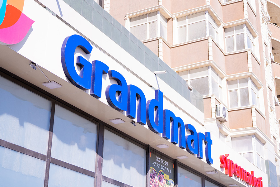 На фото вы можете увидеть нашу последнюю работу — полное брендирование магазина «Grandmart», расположенного в 7 мкр. города Актау. Оформление было выполнено снаружи и внутри.
