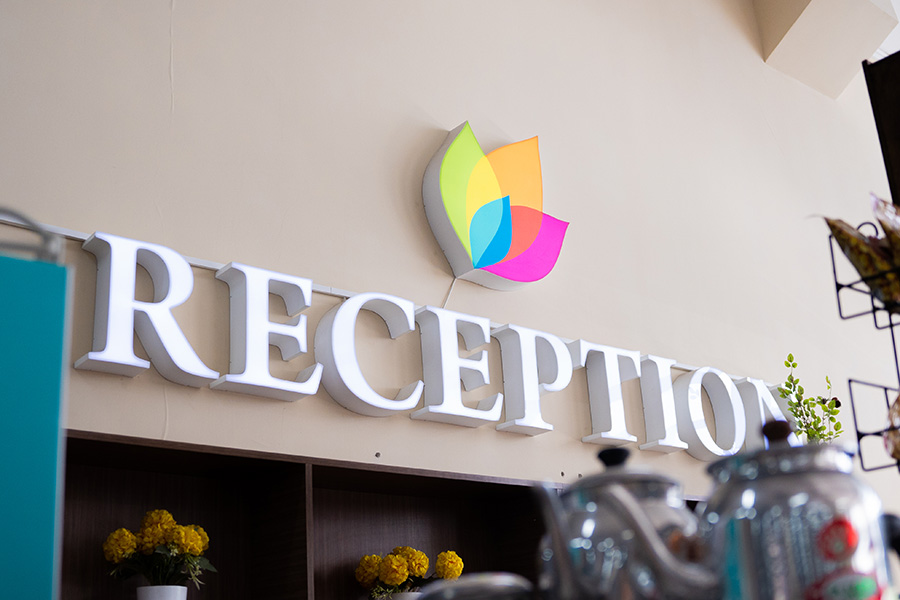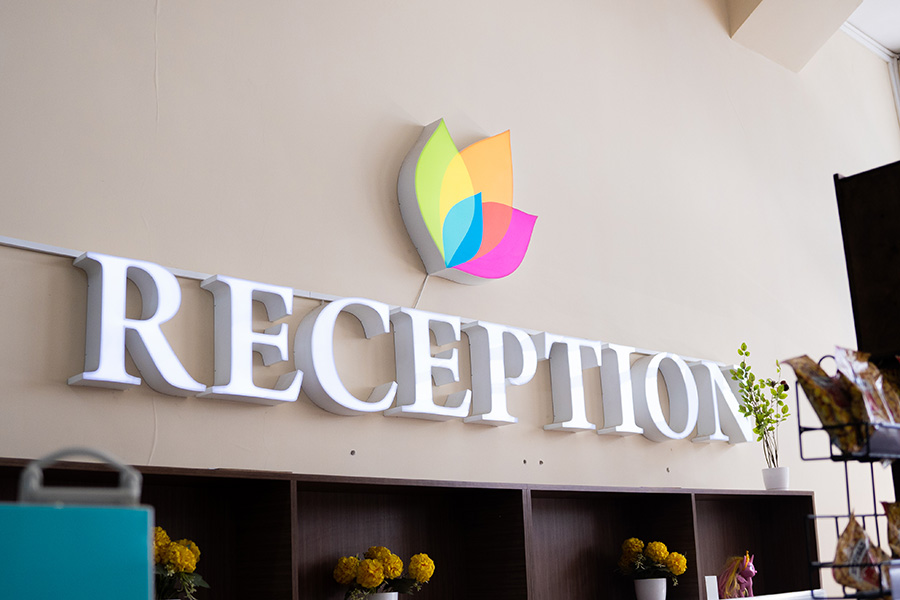 - Вывески “Reception” – объемные, несветовые буквы, выполненные из ПВХ и оклеенные пленкой Оracal. Сроки производства – 7-10 рабочих дней.