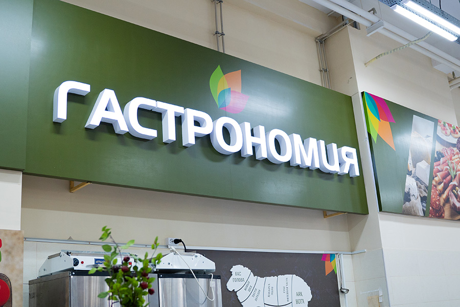 - Плашки с названием продуктов – объемные, несветовые. Материал — ПВХ, оклеенный пленкой Оracal. Сроки производства – до 5 рабочих дней.