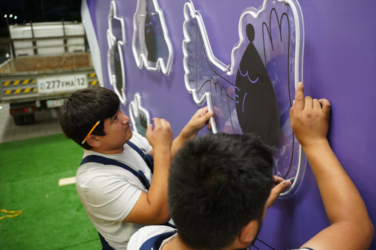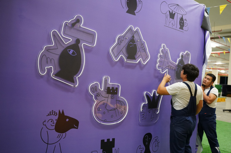 Несколько суток ушло на печать огромного количества баннеров и флагов, установку виндеров, изготовление фотозон, отдельных декораций и ростовых фигур, изготовление световых и не световых вывесок, неоновых атрибутов. Не говоря уже о монтаже всех этих конструкций...